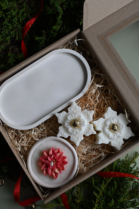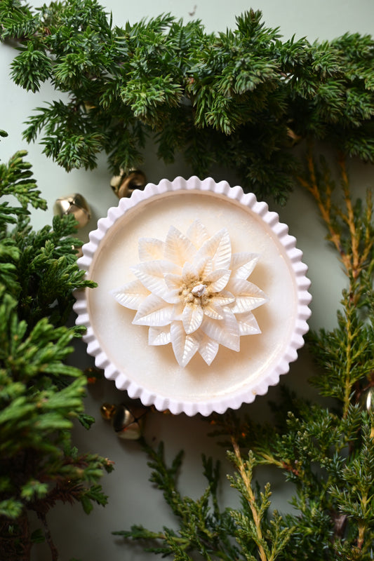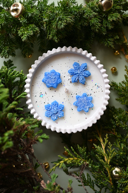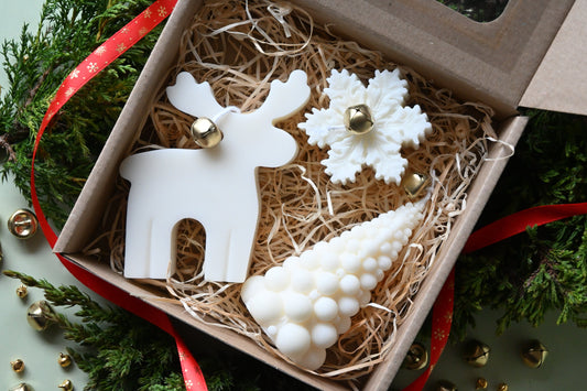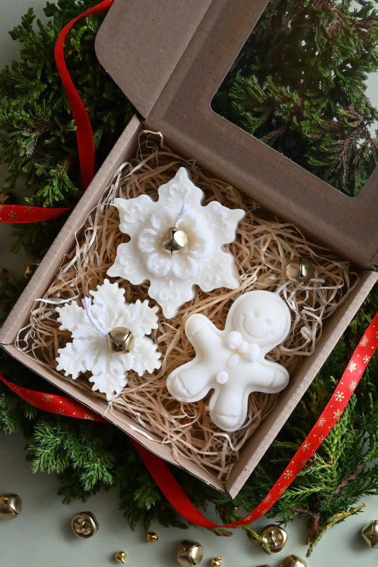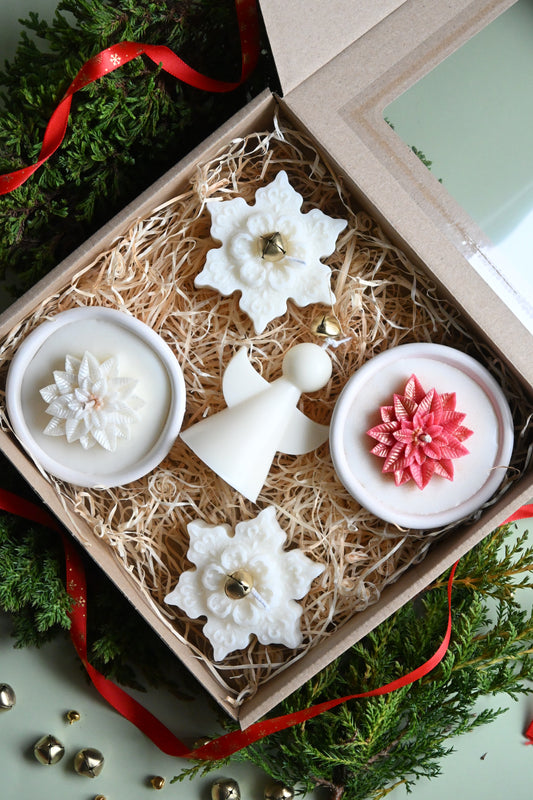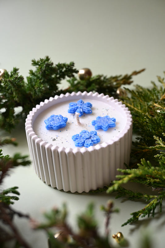 Každá sviečka je ručne odlievaná zo 100 % prírodného sójového vosku, doplnená o jedinečné ozdoby – od nežných snehových vločiek, cez vianočné ruže až po elegantné metalické akcenty. Všetky sú vytvorené s láskou a precíznosťou, aby priniesli do tvojho priestoru harmóniu, pokoj a sviatočnú atmosféru.