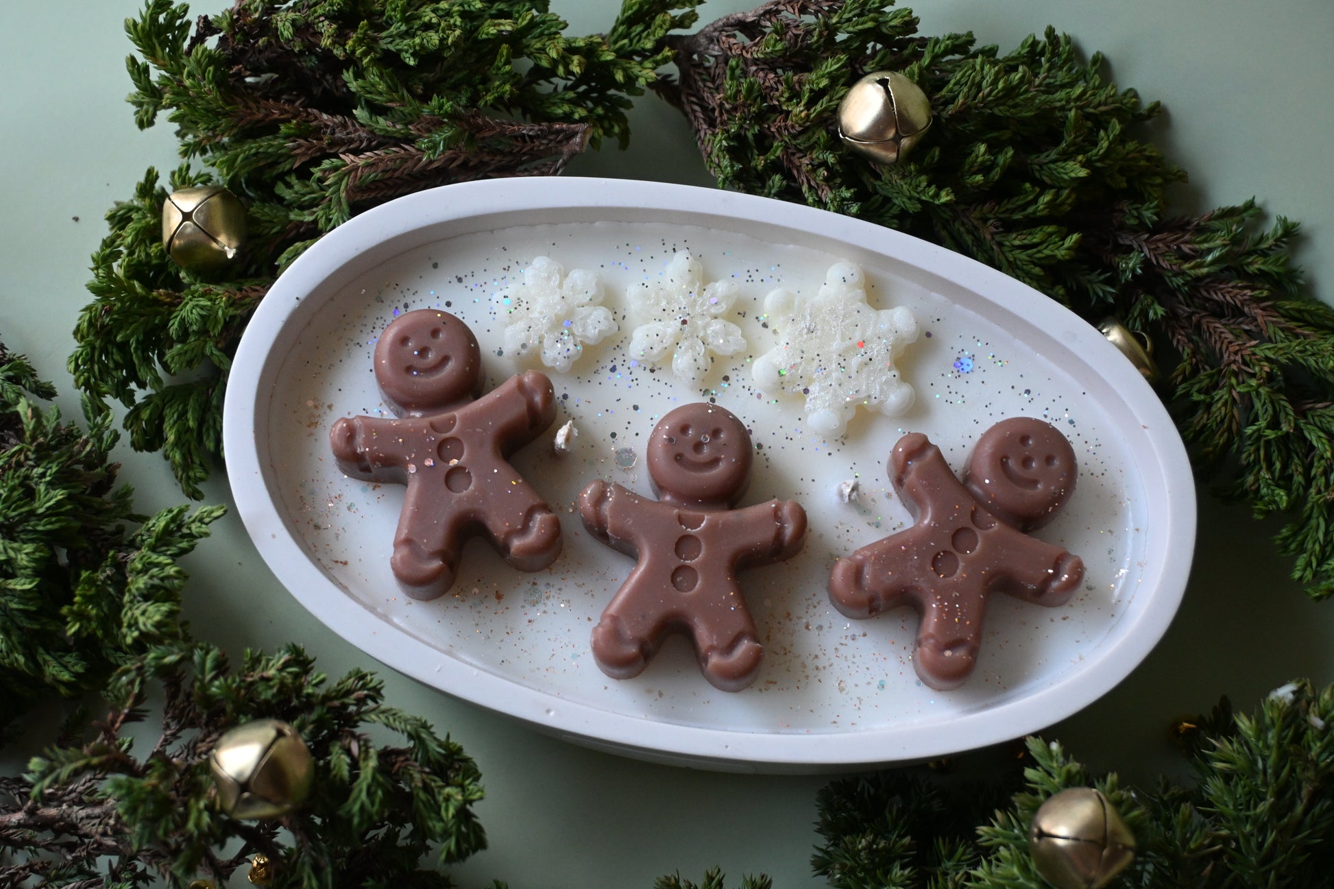Originálna ručne odlievaná sviečka v jesmonitovej miske, ktorá okamžite navodí sladkú vianočnú náladu. Zdobená roztomilými perníkovými mužmi a trblietkami pripomína vôňu čerstvo upečených koláčikov a teplo domova. Sviečka je vyrobená zo 100 % sójového vosku, vďaka čomu horí čisto a rovnomerne.