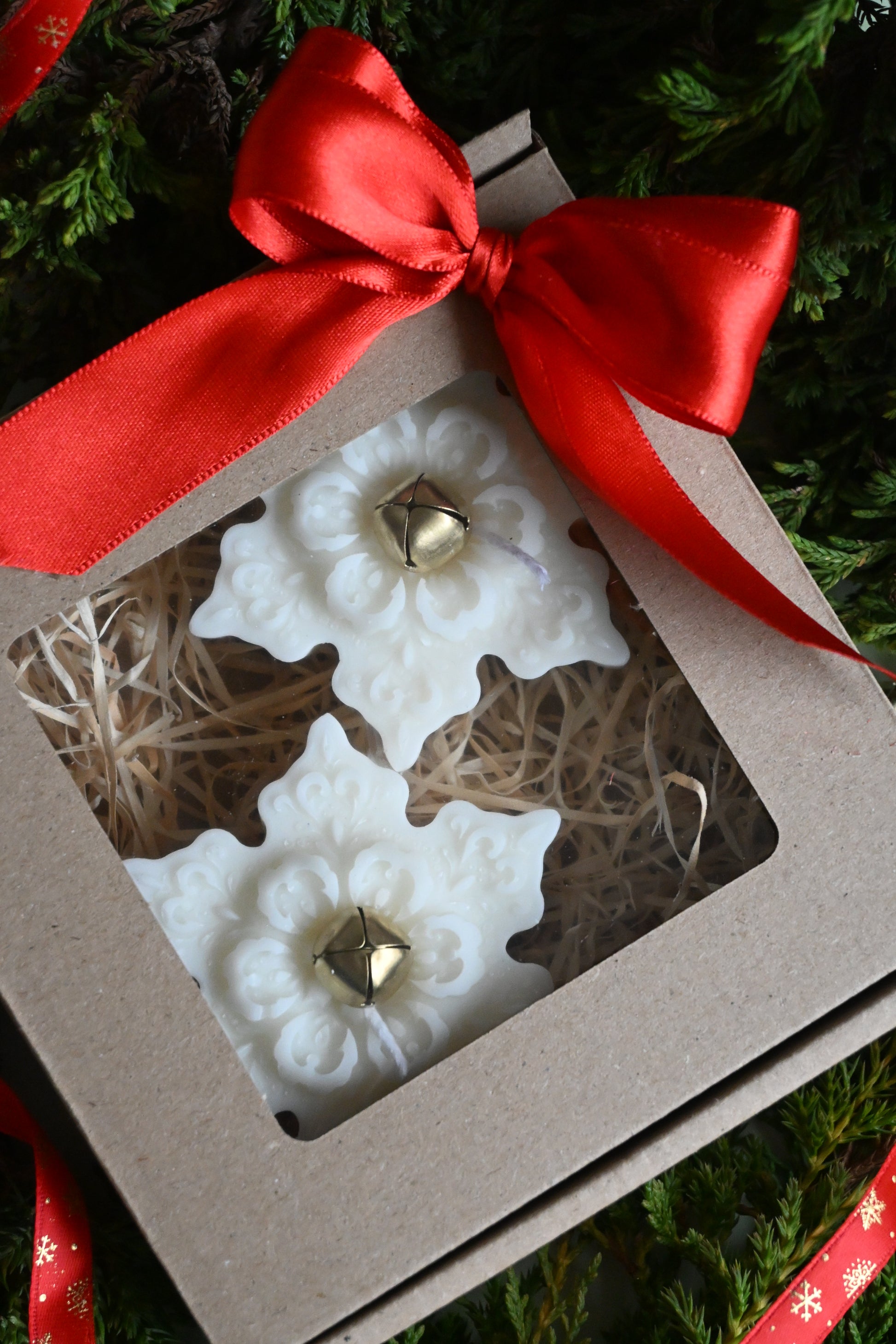 Vychutnajte si vôňu Vianoc s elegantným setom dvoch sójových sviečok v tvare vločiek, ktoré prevoňajú domov teplou arómou pomaranča, škorice a vareného vína.