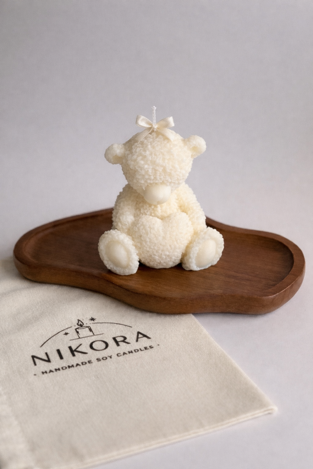 Roztomilý detail, ktorý zahreje pri srdci. Ručne vyrábaná sójová sviečka v tvare medvedíka je symbolom láskavosti, nežnosti a starostlivosti – ideálny darček na Valentína pre niekoho výnimočného.